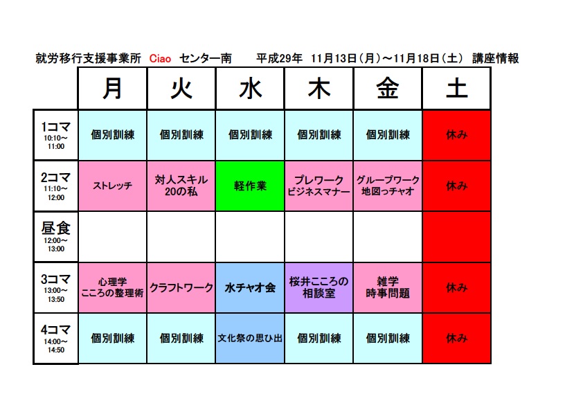 今週の予定 画像